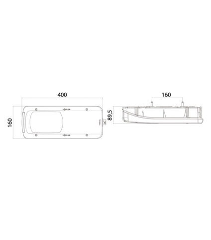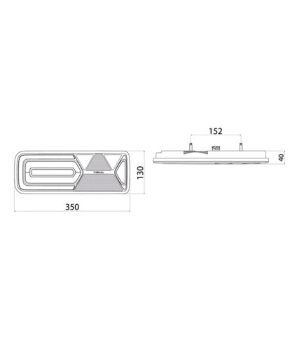 Fabricante: Schmitz Voltagem: 24V Fonte: LED Conector: AMP 1,5 – conector traseiro de 7 pinos Medidas: 350x130x40 mm Distância do