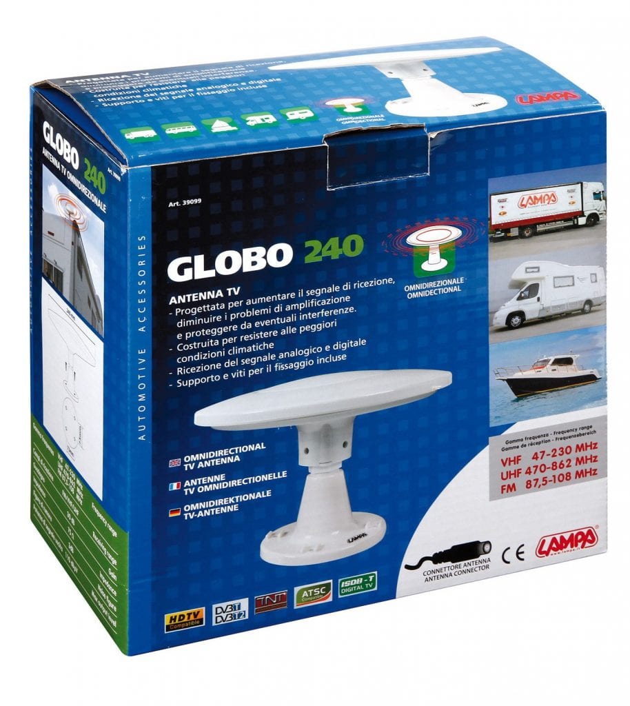 “Antena de TV Globo de 24 mm, con recepción de señal analógica y digital.\r\n\r\nAntena ideal para camiones, caravanas y barcos, etc.\r\n\r\nKit de fijación incluido.”