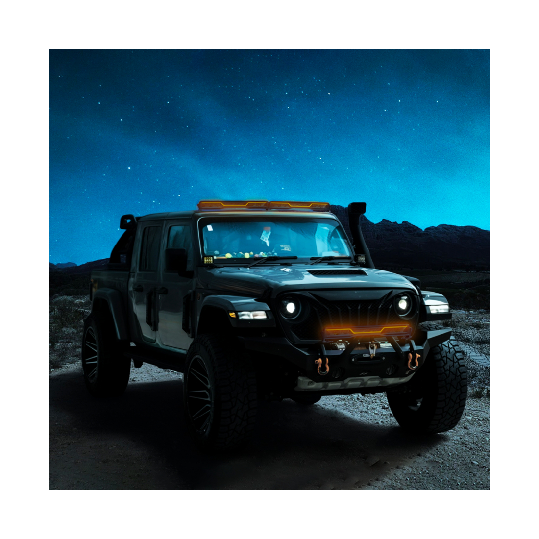 Jipe off-road na noite estrelada