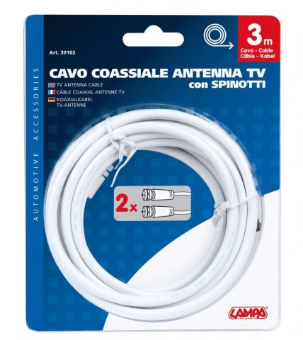 “Cable de antena de tres metros de longitud. Con ambos conectores en los extremos TV/SAT.”