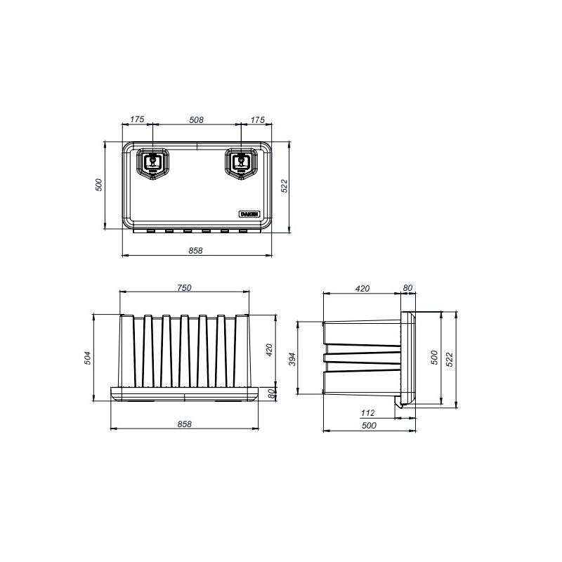 “Caja de almacenamiento en plástico 858x522x500.\r\n\r\nResistente a los rayos UV, al fuego, al aceite y a las temperaturas. Capacidad en litros 120 o 65 kg.\r\n\r\nCaja estanca al polvo y al agua.\r\n\r\nNo incluye soportes, vendidos por separado con la referencia 80201481 y 80201483”