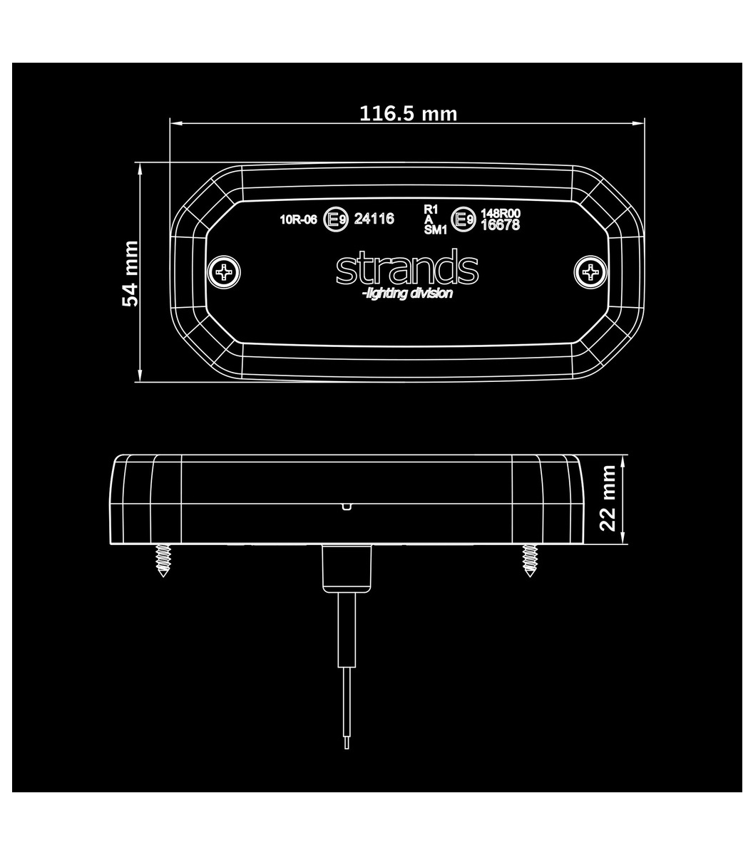 “Tensión (V DC) 10-40V DC\r\nEfecto teórico (W) 12V 3,5\r\nEfecto teórico (W) 24V 3,5\r\nConsumo (W) 12V 3,5\r\nConsumo (W) 24V 3,5\r\nFunciones de luz de posición\r\nKelvin 6000\r\nClase IP IP67\r\nColor de la caja negra\r\nColor de la lente ahumada\r\nColor de los LEDs blancos\r\nLuz de posición Sí\r\nCable de conexión\r\nLongitud del cable (mm) 5000\r\nMaterial de la caja/Policarbonato\r\nMaterial de la lente policarbonato\r\nLongitud (mm) 116,5\r\nProfundidad (mm) 54\r\nAltura (mm) 22\r\nCC (mm) 90\r\nTemperatura de funcionamiento -30°C – +65°C\r\nAprobado ADR No\r\nAprobado y Sí”