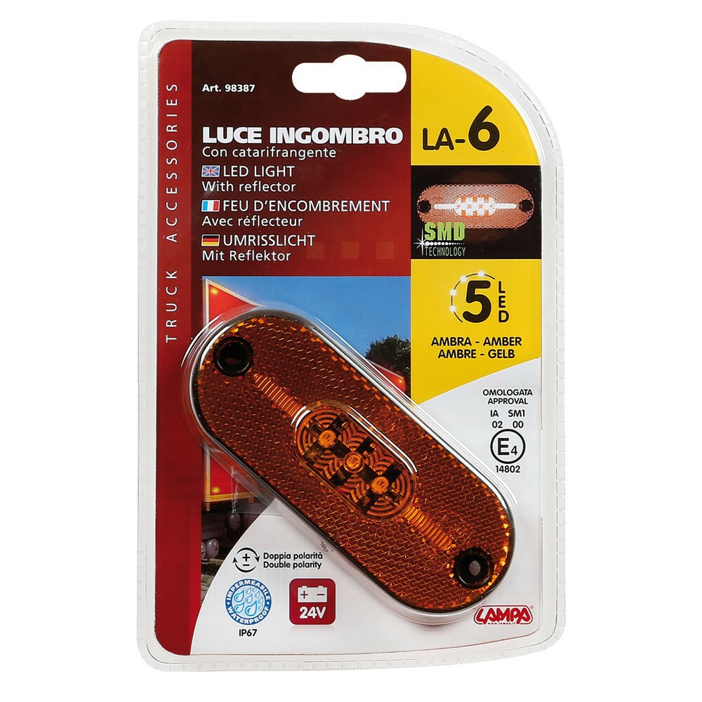“Farol Lampa 5 LEDs naranja 24V\r\nFarol homologado y impermeable IP67”