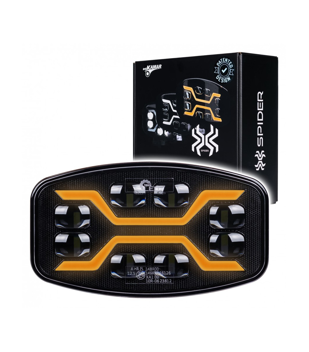 “Farol Longo Alcance Spider 72 Leds 12/24V\r\n\r\nMATERIAL\r\nLente: PC\r\nHabitação: AL\r\n\r\nQUANTIDADE LED/LM\r\n72 LED\r\n\r\nMONTAGEM\r\nparafuso\r\n\r\nARAME\r\n250mm\r\n\r\nFUNÇÃO\r\nluz de condução\r\nluz de aviso\r\nposição (branco luz)\r\n\r\nNÚMERO DO MEDIDOR (intensidade da luz)\r\n12,5\r\n(CD 53750)\r\n\r\nWATT\r\n54W\r\n1,5W\r\n12W\r\n\r\nTENSÃO\r\n12V/24V\r\n\r\nCERTIFICADOS\r\n\r\nECE R10\r\nECE R65\r\nECE R148\r\nECE R149\r\n\r\nEMBALAGEM -\r\nCAIXA A GRANEL\r\n\r\ncart. dimensão.:\r\n575x482x358mm\r\npeso: 20,8kg\r\n12 peças/caixa a granel”