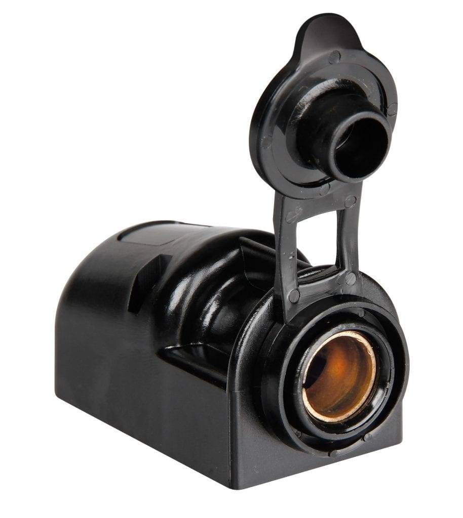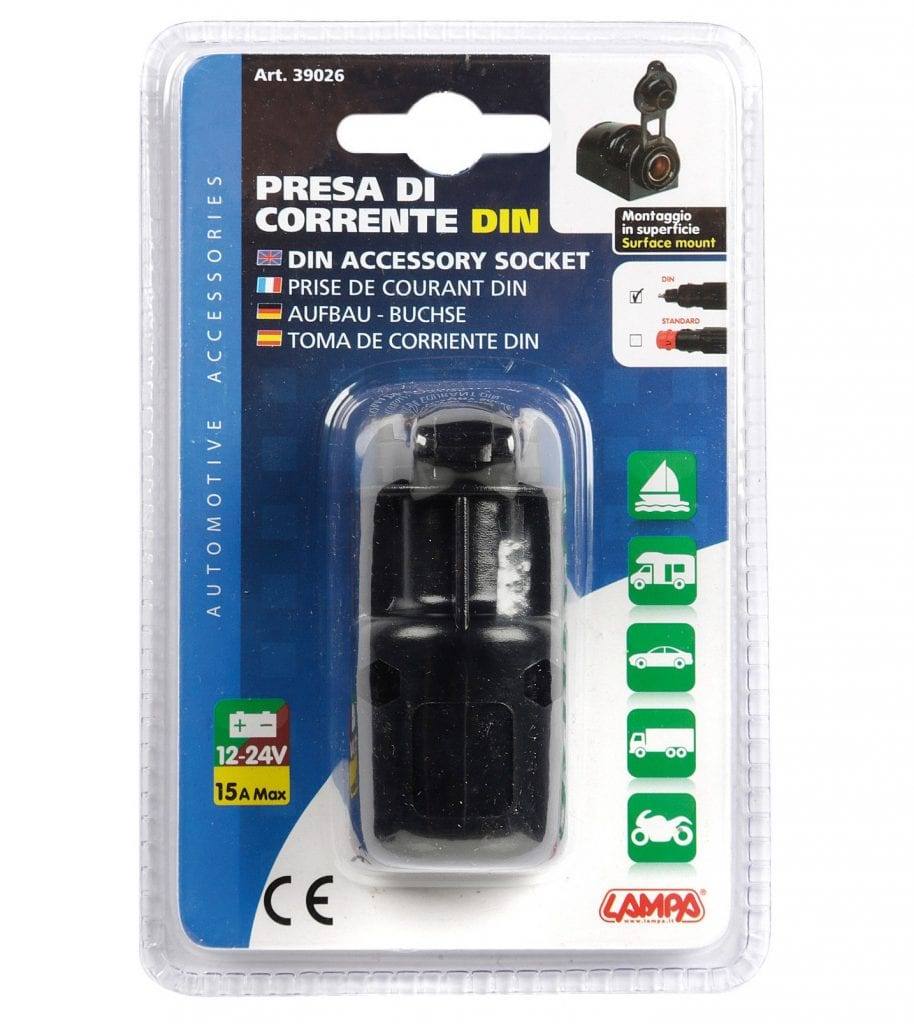 “Conector de encendedor DIN externo 12/24V con tapa.”