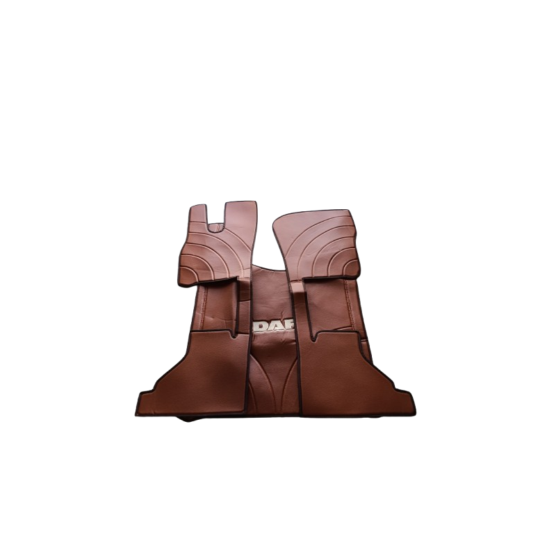 “Juego completo de alfombrillas en eco-piel marrón para DAF XG+ (2021-)\r\n\r\nAlfombrillas de cobertura total (ECO-LEATHER Q) para DAF XG+ (2021-).\r\nLas alfombrillas aportan un estilo y una elegancia únicos a su camión.\r\nMateriales de la más alta calidad, acabados cuidadosos y soluciones innovadoras caracterizan nuestras alfombrillas.\r\nPara el conductor profesional, la cabina es sinónimo de hogar.\r\nSabemos que es muy importante sentirse en su camión como si estuviera en su propia sala de estar.\r\nLas alfombrillas acolchadas en cuero sintético hacen de su interior un lugar acogedor.\r\nSe adaptan perfectamente a la cabina del camión y a otros productos acabados en cuero ecológico.”