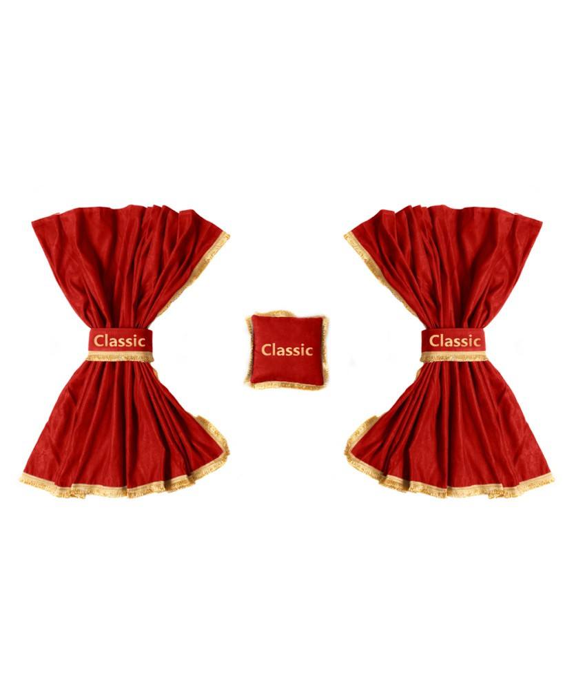 113,82€ s/ IVA 140,00€ c/ IVAKit de cortinas en tejido opaco rojo con franjas negras