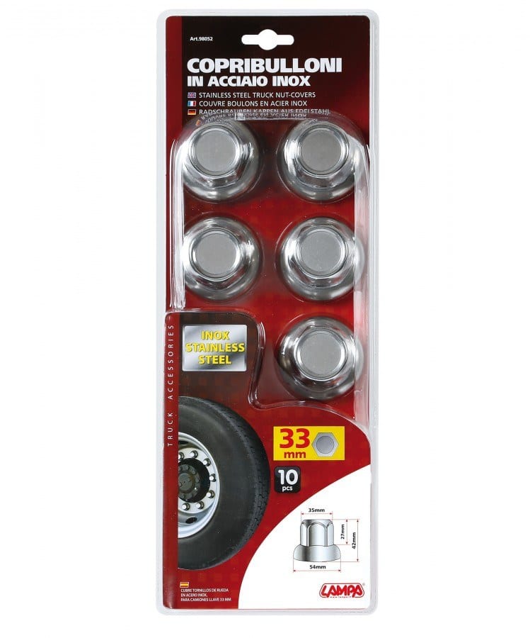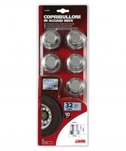 Kit 10 tuercas de ruedas en acero inoxidable.