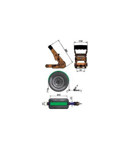 «Cinta de amarre de 25 mm de ancho y 6 metros de longitud.\r\n\r\nCapacidad de 8000 kg con gancho en forma de J.»