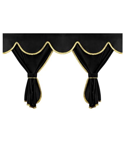 Kit de Cortinas Opacas Pretas e Franja Dourada