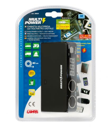 Multi-ficha de isqueiro com voltímetro 12/24V