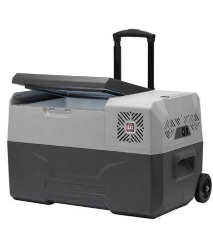 Geleira termoelétrica com um novo design. Oferece refrigeração ou aquecimento portátil conveniente e eficaz.