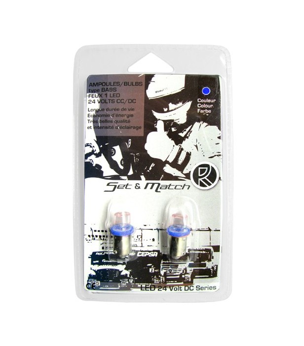 Blister 2 Lâmpadas Led 24V T4W Azul/Laranja/Verde.