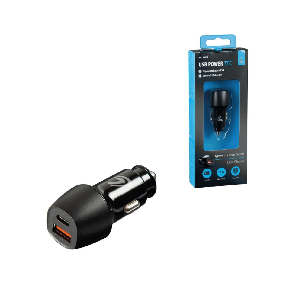 Carregador de Isqueiro USB/USB-C 18W 12/24V