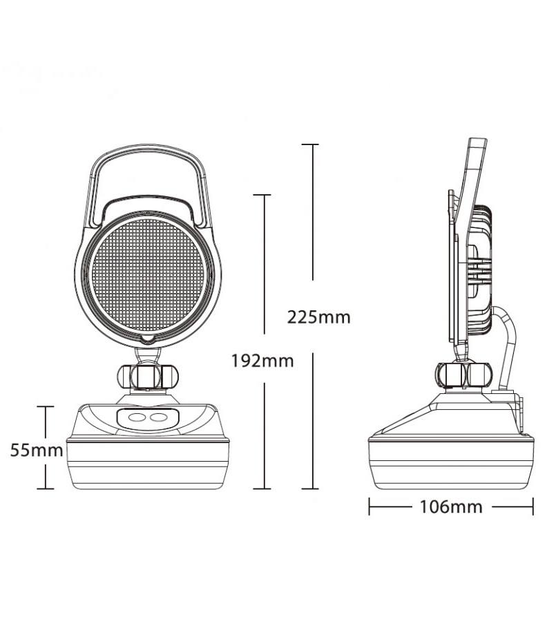 Farol de trabalho com intensificação de 100% ou 50% e com luz SOS