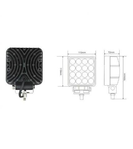 Farol de Trabalho 16x Led Quadrado com Interruptor