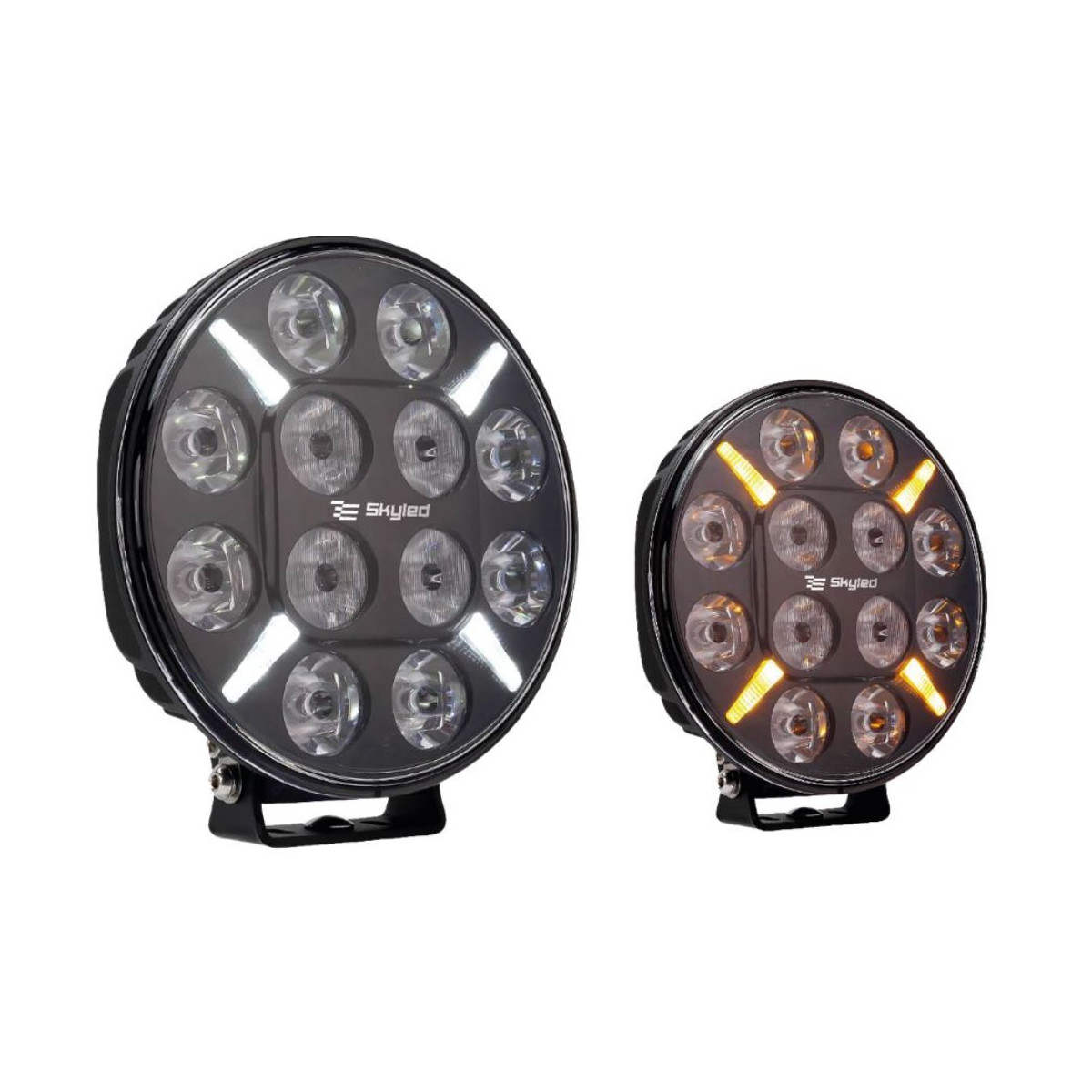 A luz LED Skyled Jupiter 9″ 120W agora vem com luz de posição dupla – branca ou laranja, escolha a cor desejada.