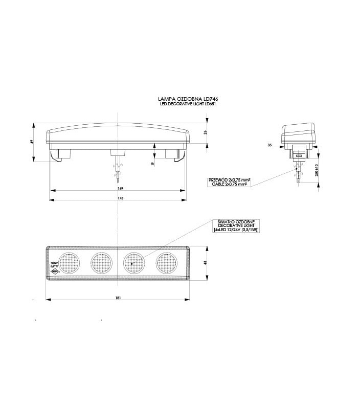 Cabo- 2×0,75 mm 2 ; comprimento do cabo 0,3 m
