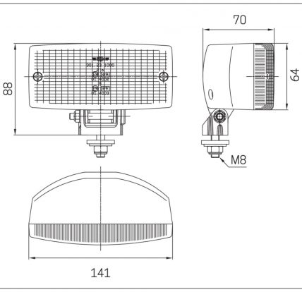 Farolim de posição com pivot de fixação.