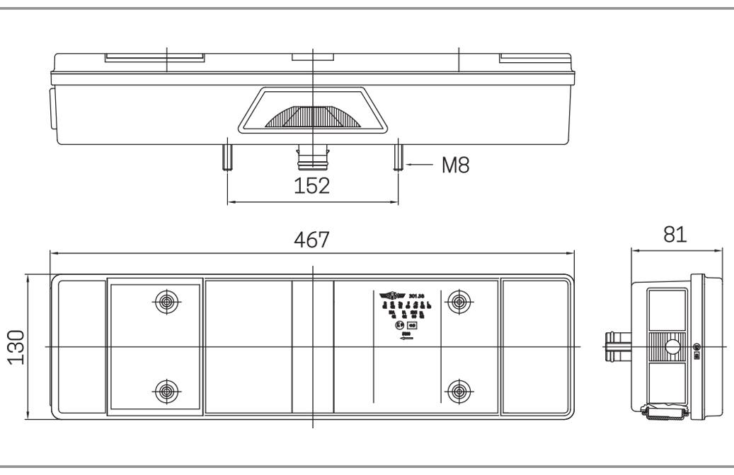 7 funções (2x presença, stop, pisca, refletor, marcha atrás e nevoeiro).