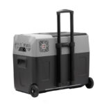 Inclui adaptador de isqueiro para o veículo como adaptador de 220V. Sua alça extensível e rodas integradas facilitam o transporte.