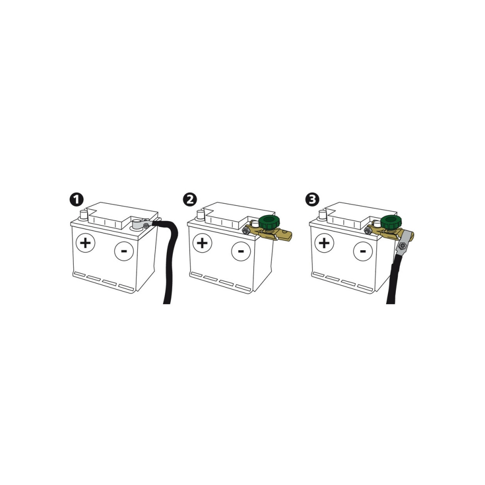 Adapta-se a todas as baterias automotivas de tamanho padrão. Permite desligar rápida e facilmente a bateria do veículo para conservar a carga durante estacionamentos prolongados, para segurança e manutenção.