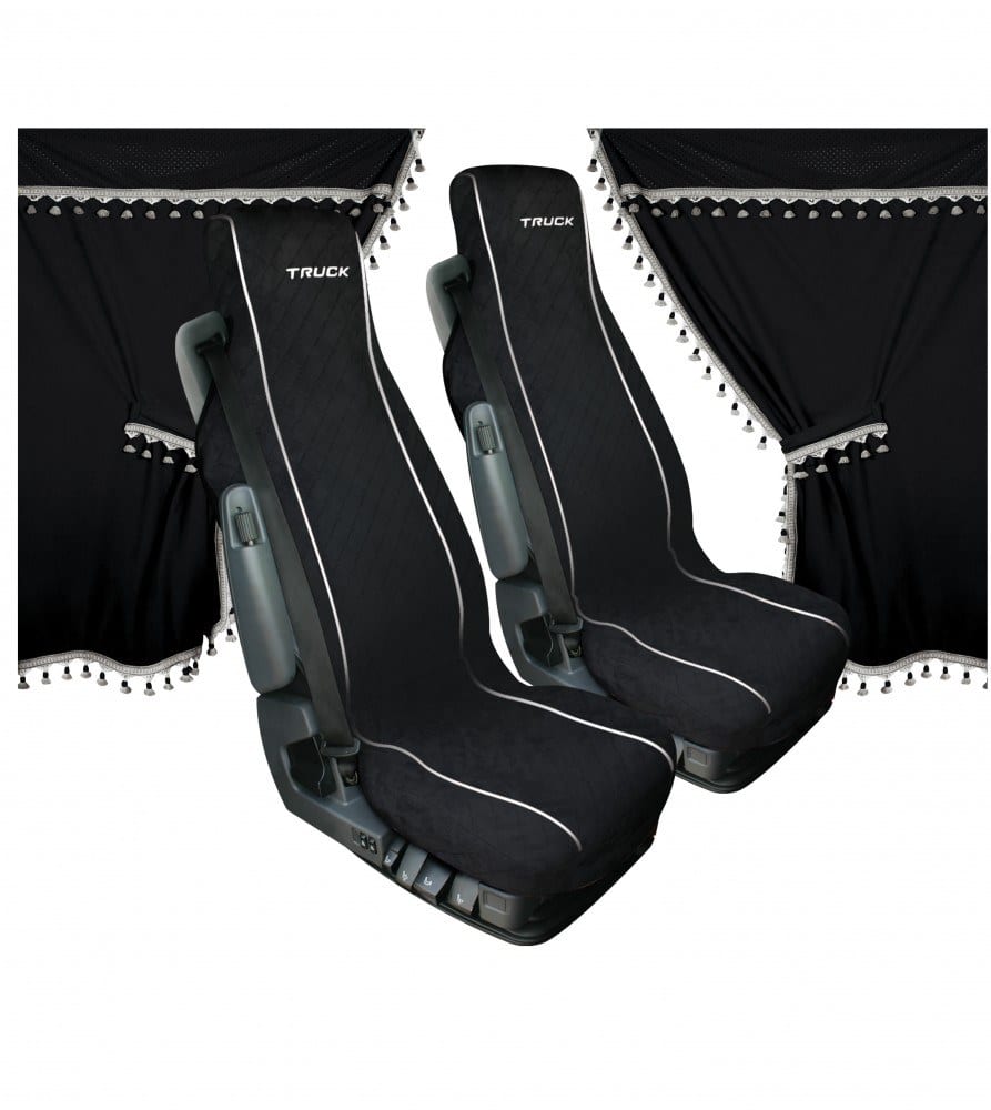 Kit de cortinas 9 peças mais 2 capas de banco em microfibra de 220gr e cor preta.
