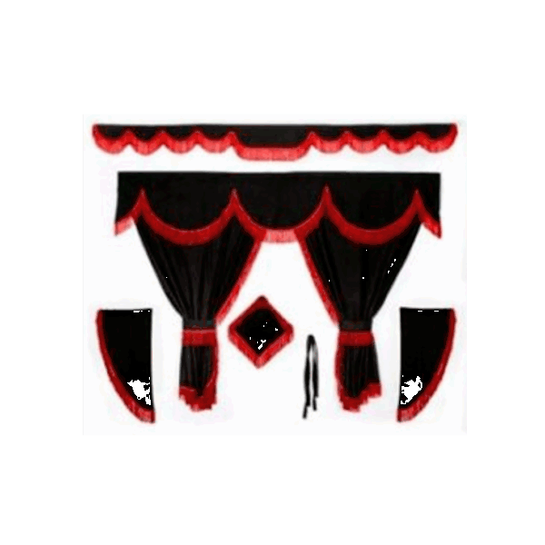 Kit de Cortinas Opacas Pretas e Franja Vermelha