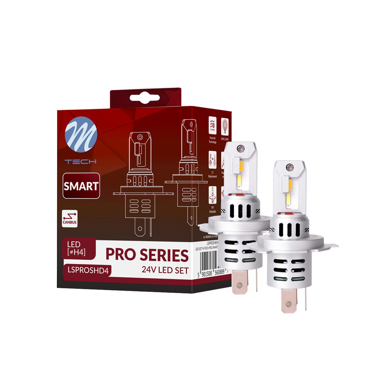 Kit De Lâmpadas H4 Led 24V M-Tech Pro Smart Series