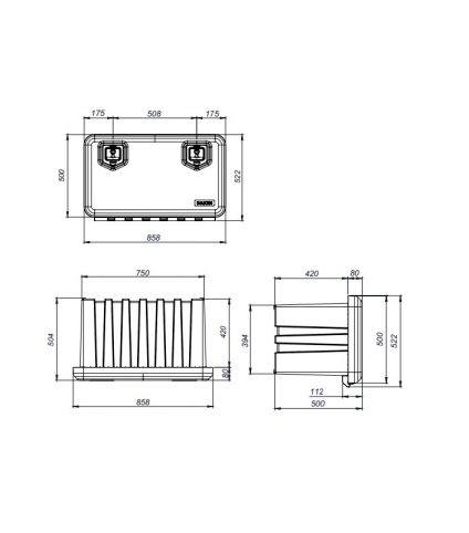 Suporte para as seguintes caixas de arrumes: – Caixa de arrumes plástico 500x350x300; – Caixa de arrumes plástico 500x350x400;