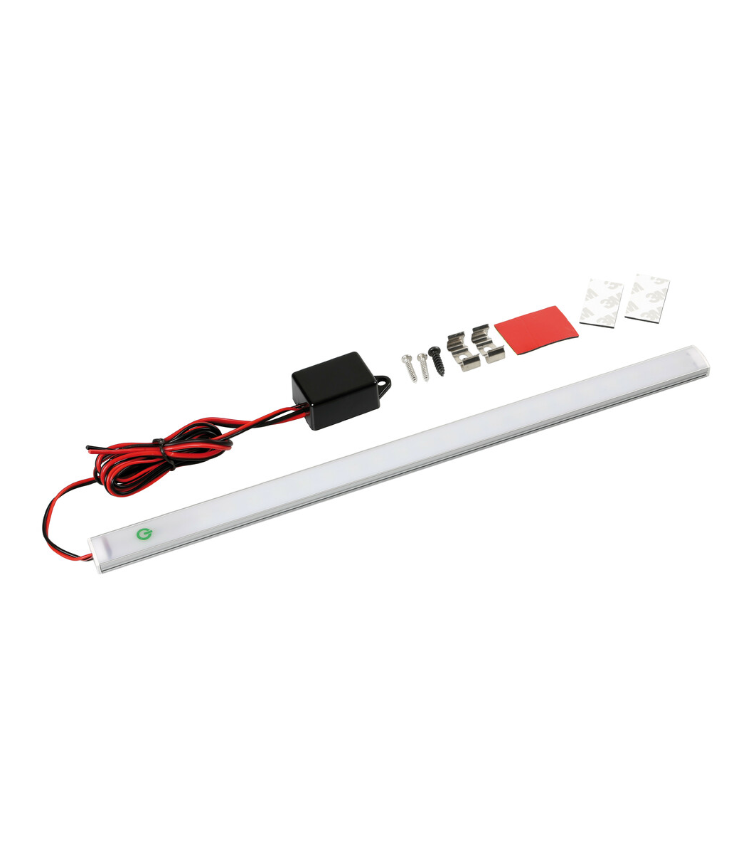 Instalação através de fita adesiva de dupla face ou clipes metálicos e parafuso, ambos incluídos.