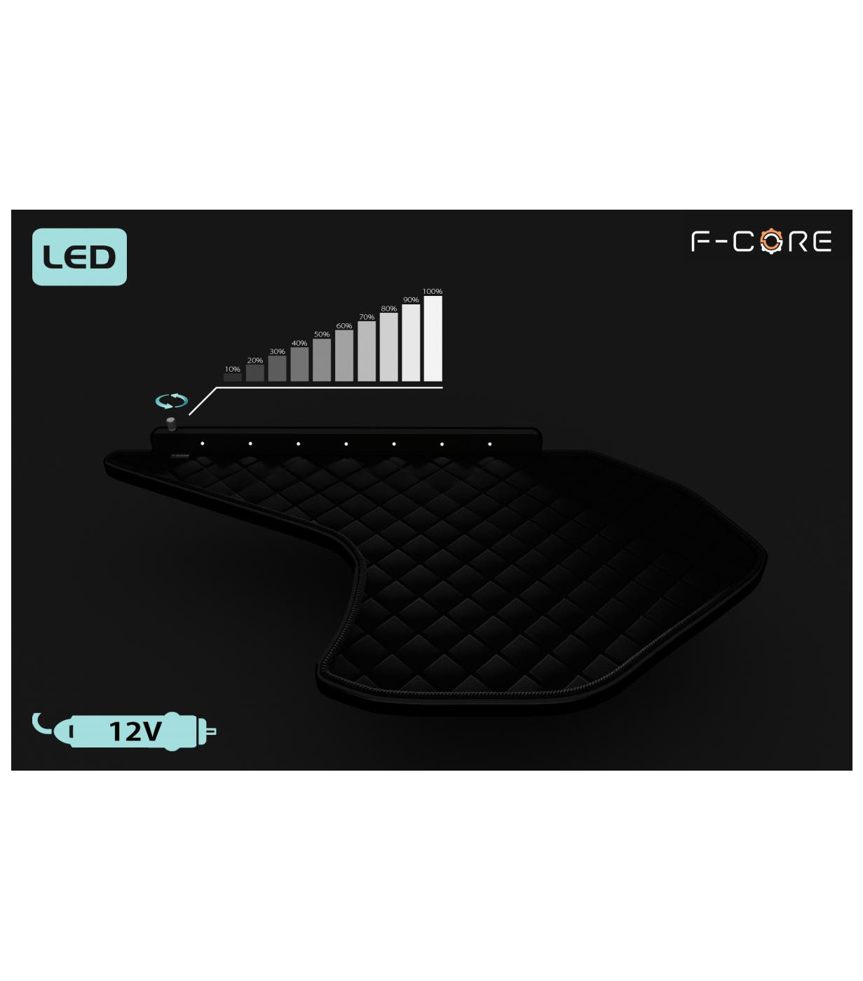 A mesa para camião foi fabricada com uma placa de madeira da melhor qualidade, com 18 mm de espessura. O tampo da mesa foi revestido com pele sintética acolchoada. O painel frontal foi equipado com LEDs de iluminação branca e direcional.