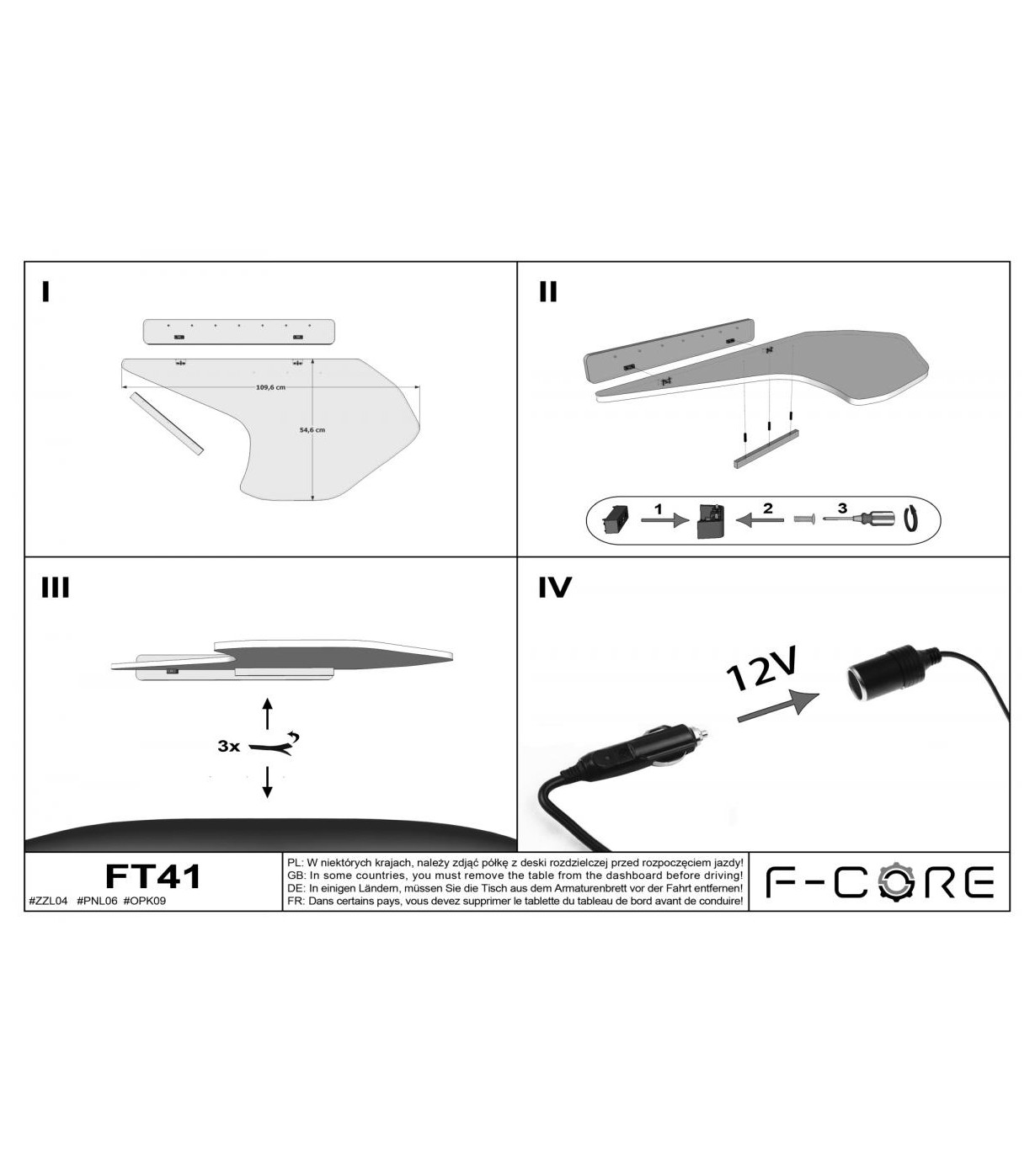 Tudo o que o condutor precisa para instalar a mesa está na caixa: instruções de instalação, velcros, parafusos e uma chave Allen.
