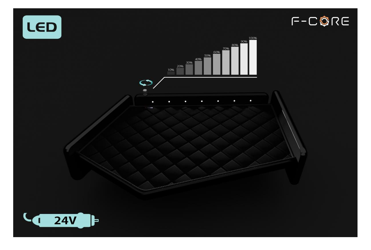 Na parte superior do painel existe um botão que regula a intensidade da luz.
