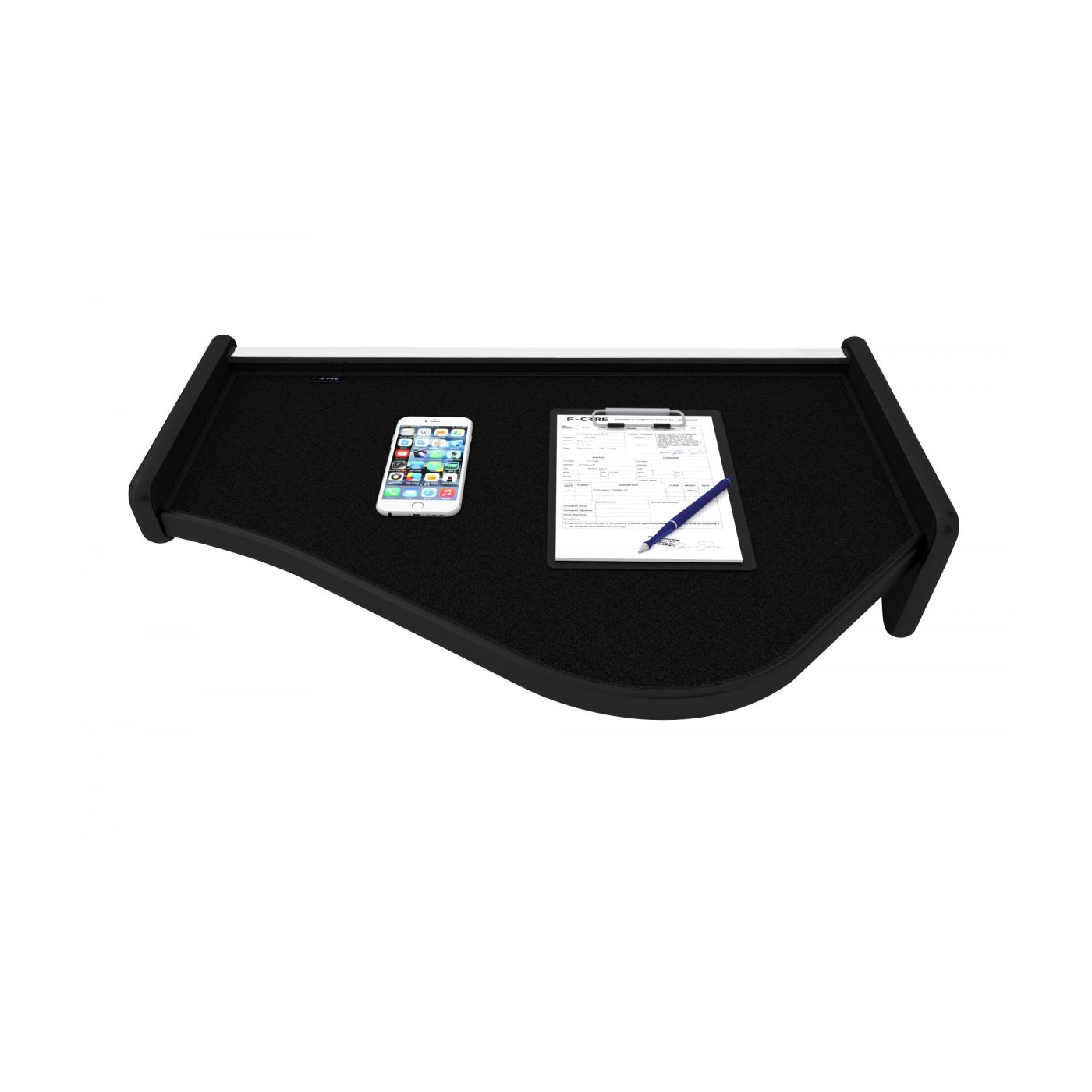 Tudo o que o condutor precisa para instalar a mesa está na caixa: instruções de instalação, velcros, parafusos e uma chave Allen.
