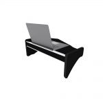 Mesa Central feita de chapa de madeira e com o forro em carpete de cor preta.