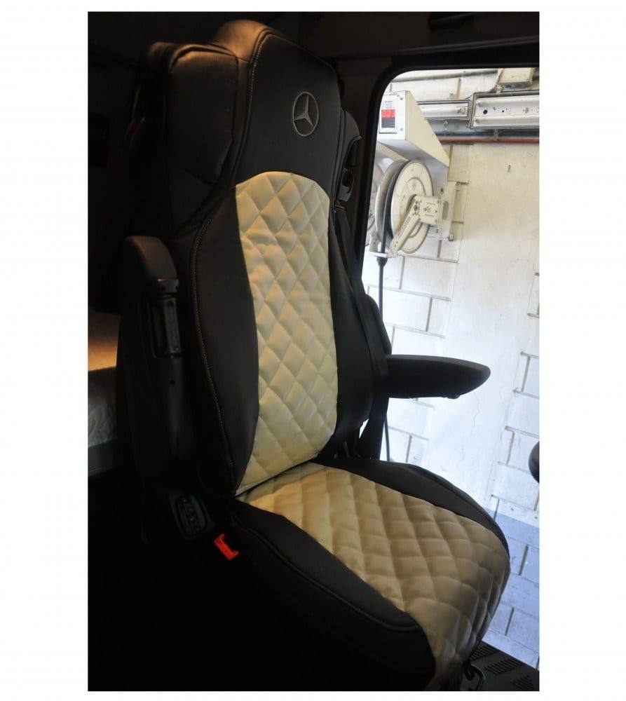 Par de capas de banco personalizado para camiões Mercedes, em tecido imitação de pele.