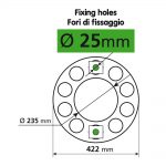 Furos de fixação Ø 25 mm.