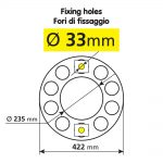 Furos de fixação Ø 33 mm.