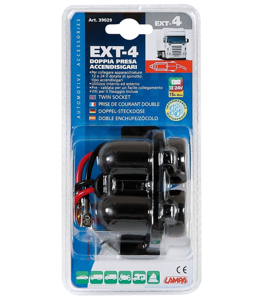 Tomada de isqueiro dupla 12/24V para uso interior ou exterior. Resistente à água.
