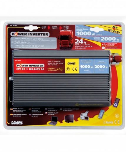Transformador de corrente de 24V DC para 220V AC. Estes transformadores permite que aparelhos 220V sejam ligados a fontes de alimentação de 24V. Pode ser aplicados em camiões, carros, caravanas e barcos.